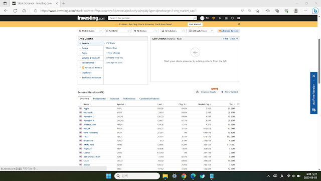 나스닥 종합주가지수에서 주식들의 가중치 비율을 알아봐요.